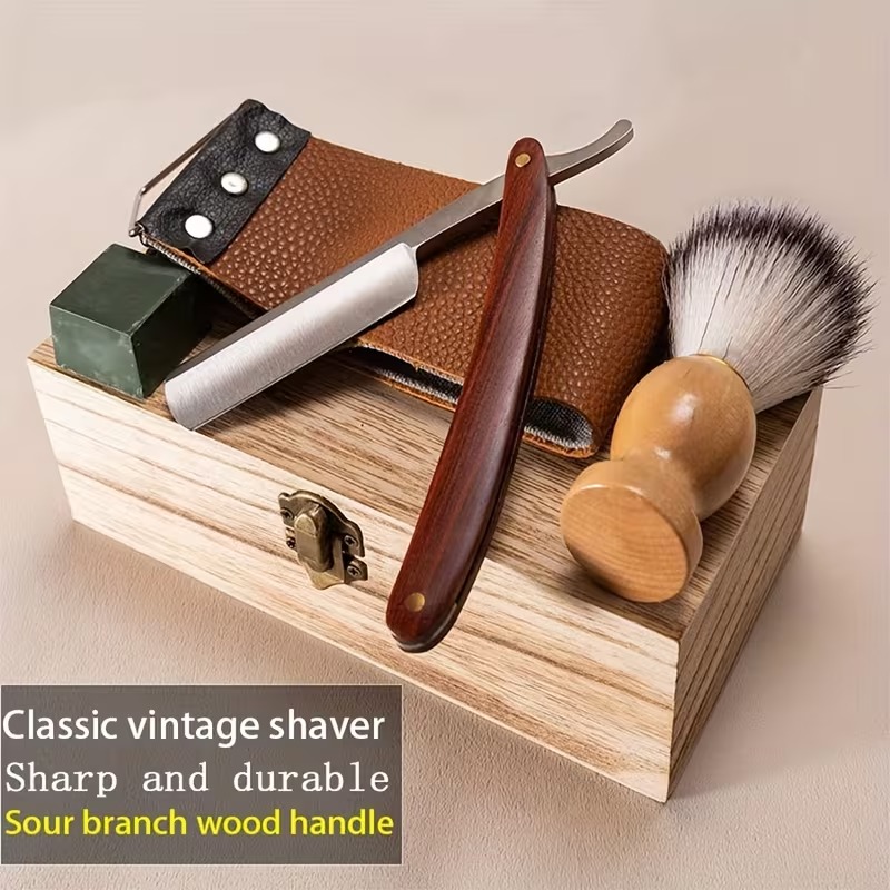 mens beard grooming kit premium straight razor with a   handle and carbon steel   grade shaving brush for facial contouring single edge razor professional throat razor and mens folding razor Product details 1